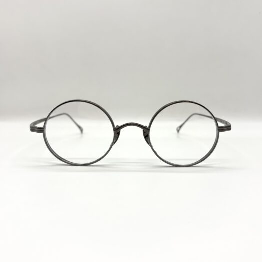 カメマンネン独自構造のフロントリムから伸びる鼻あては角度調整が細かく可能で鼻へのあたりが滑らかにフィットする構造です。厚リムが存在感を感じさせる丸メガネです。