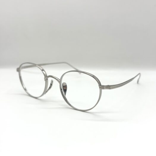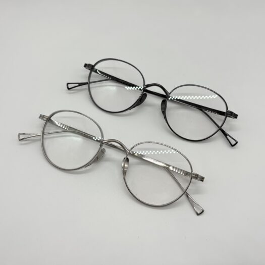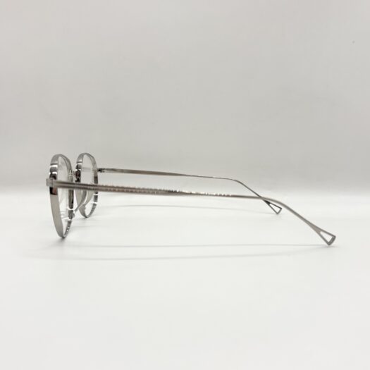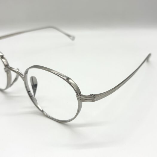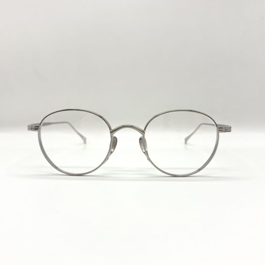 カメマンネン独自構造のフロントリムから伸びる鼻あては角度調整が細かく可能で鼻へのあたりが滑らかにフィットする構造です。厚リムが存在感を感じさせる丸メガネです。